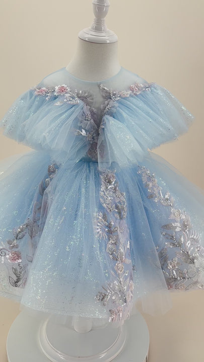 Blue Knee-length Baby Girl Birthday Frozen Dress