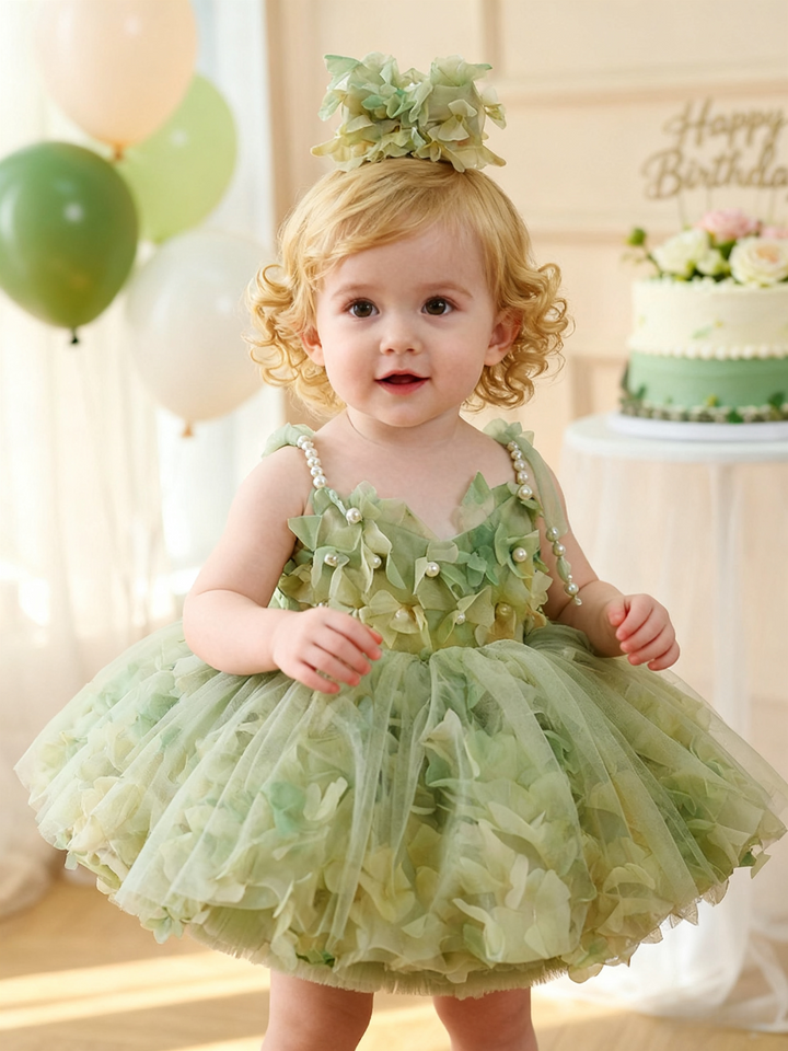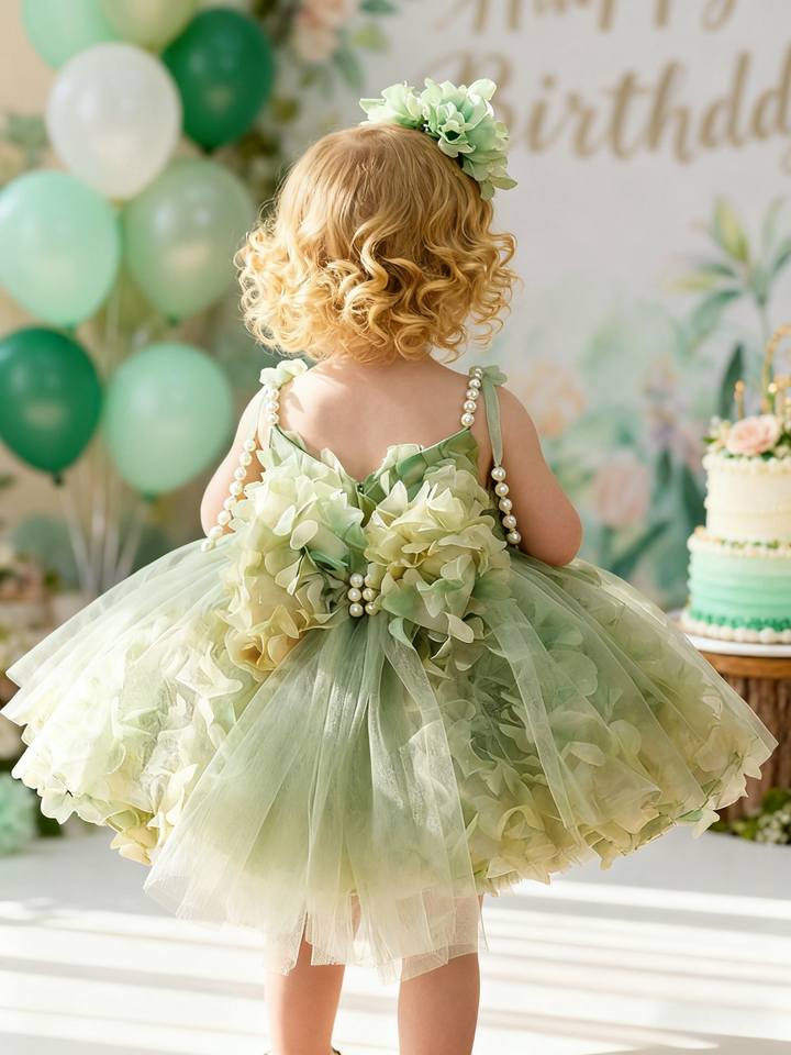 Knee-Length Sleeveless Baby Girl Birthday Dress Floral Garden