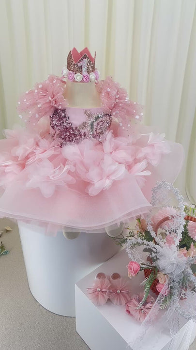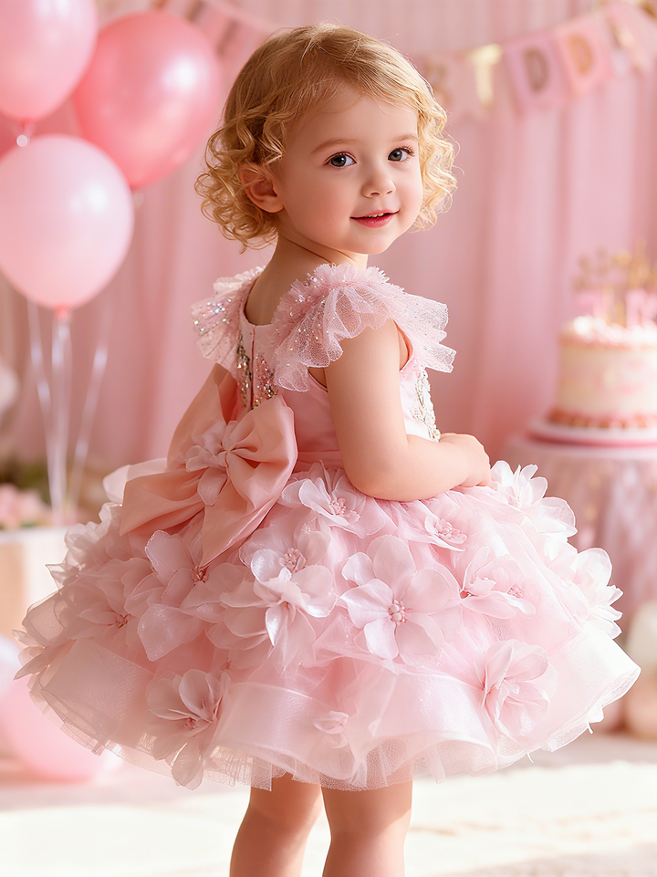 Sleeveless Knee-length Baby First Birthday Dress Floral Garden