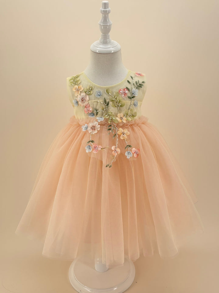 Sleeveless Knee-length Baby First Birthday Dress Floral Garden