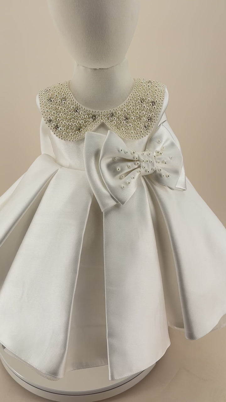 Sleeveless Knee-length Baby Girl Baptism Dress Classic White