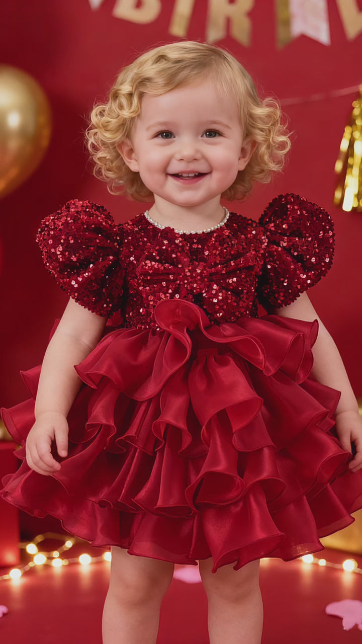 Vestido de fiesta de primer cumpleaños para niña con lentejuelas hasta la rodilla