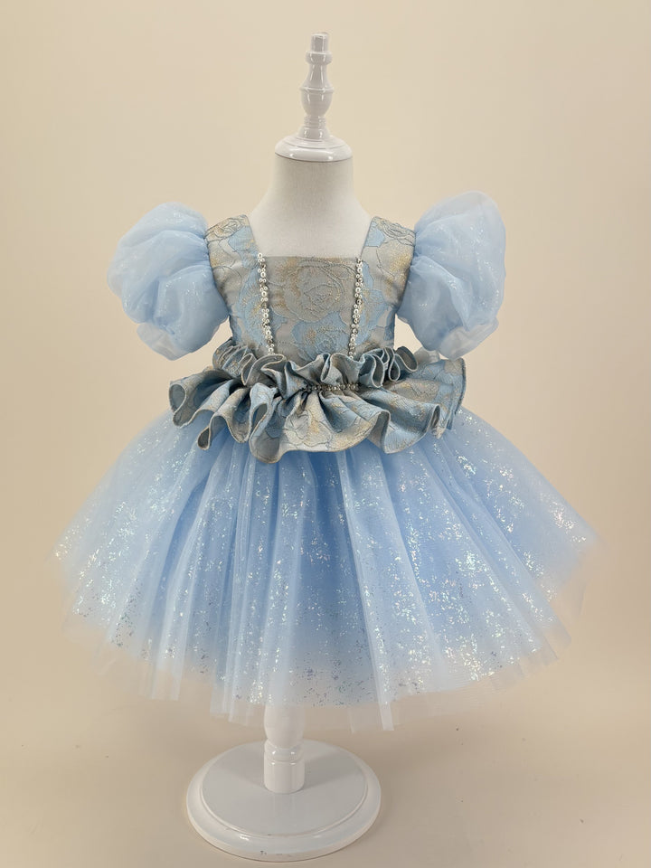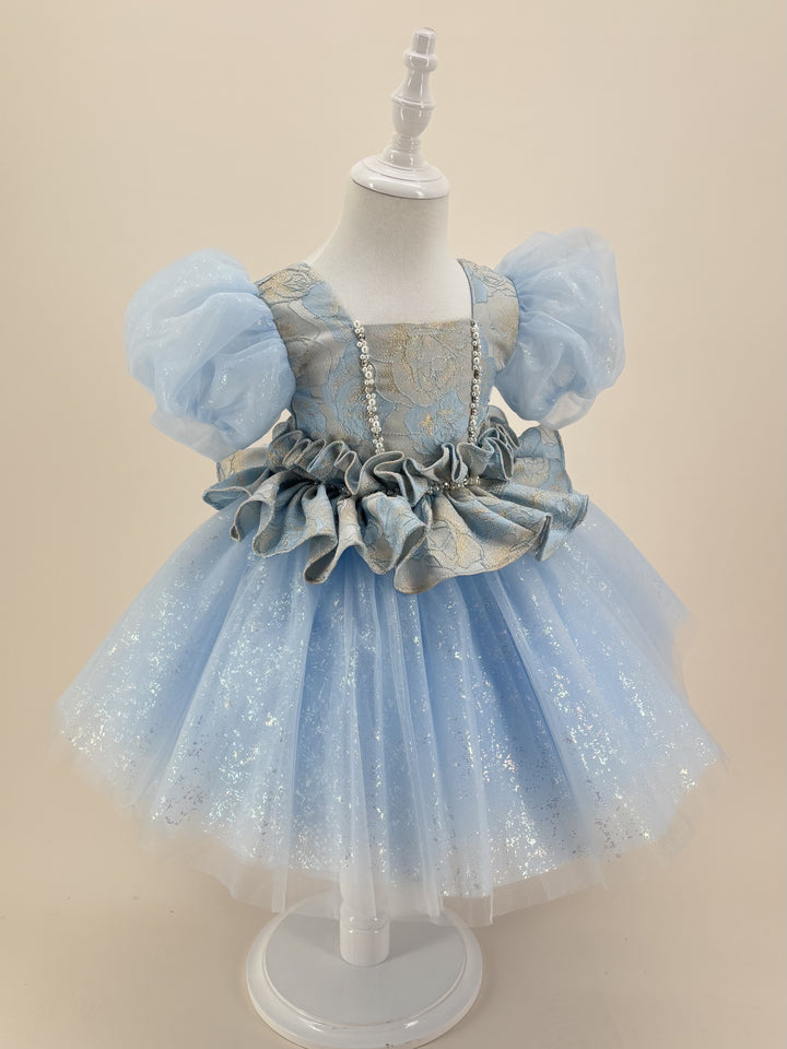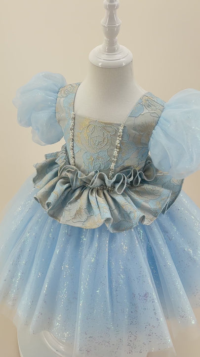 Tulle Short Sleeves Knee Length First Birthday Dress