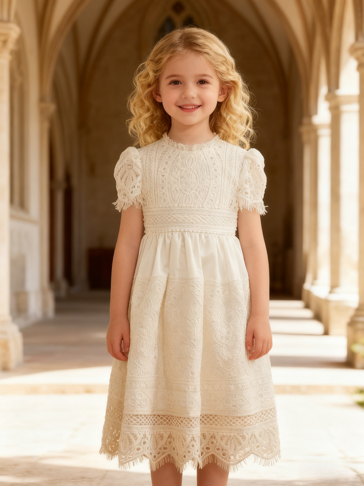 Short Sleeve Tea-length First Communion Dress