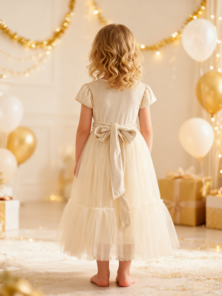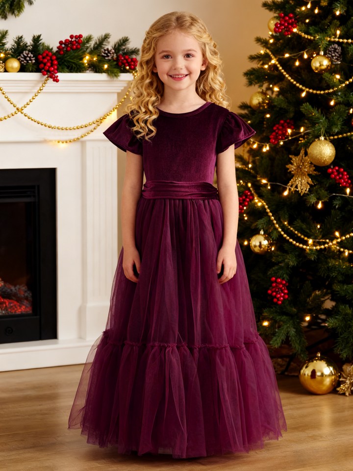 Vestido de niña de flores de invierno largo hasta el suelo de terciopelo