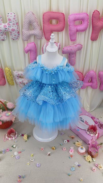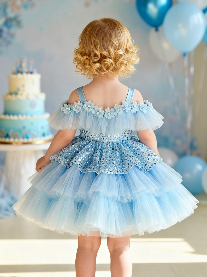 Sleeveless Knee Length Girl Birthday Frozen Dress Floral Garden