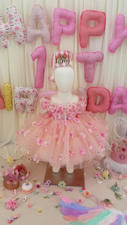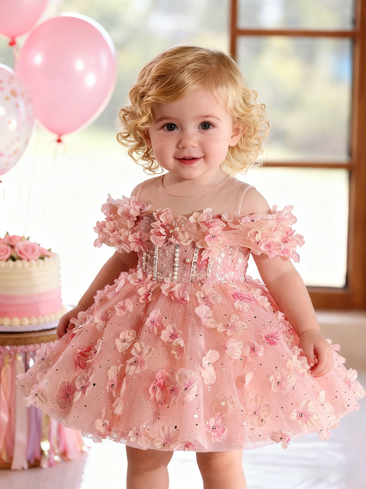 Pink Knee-length Baby Girl Birthday Dress Floral Garden