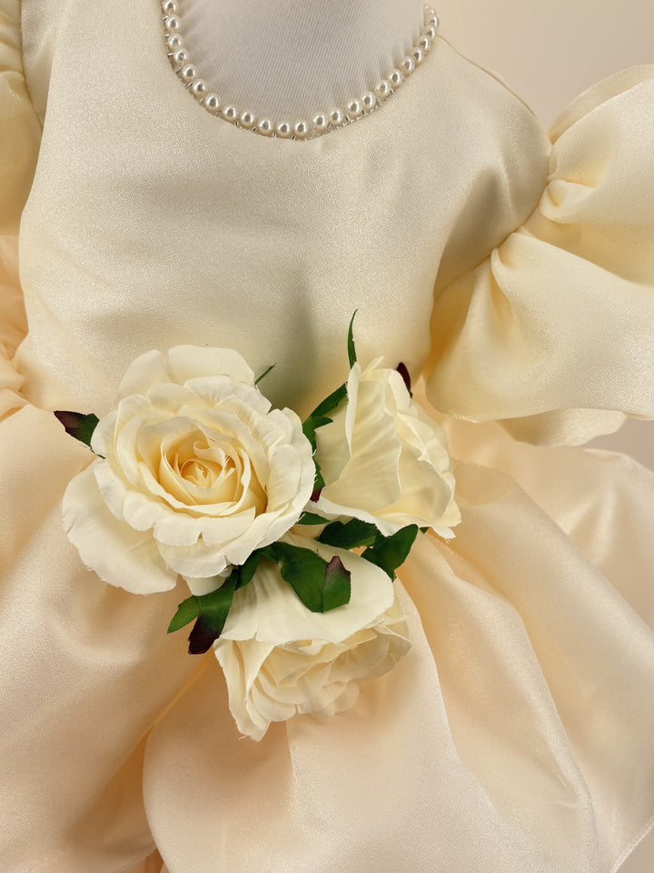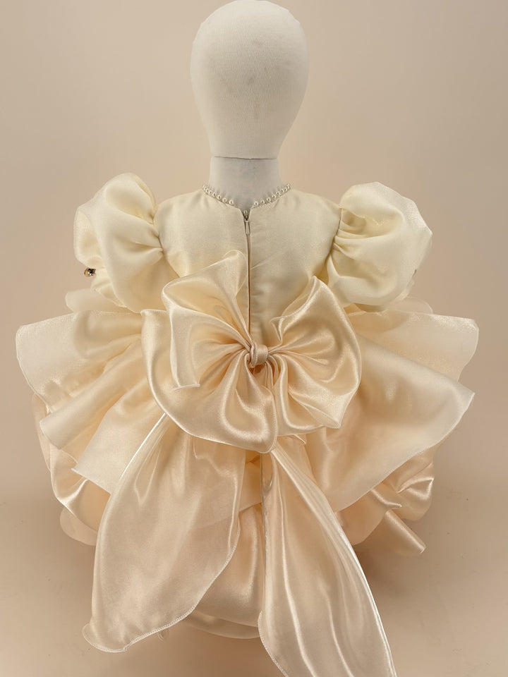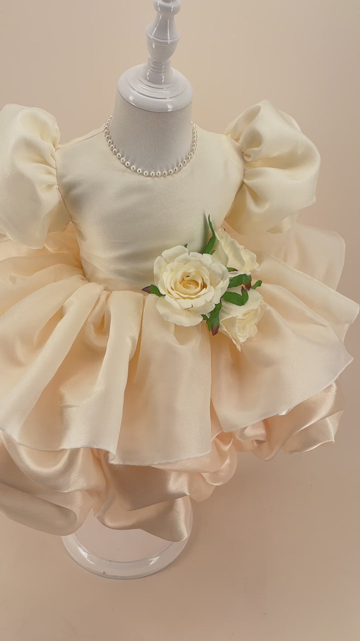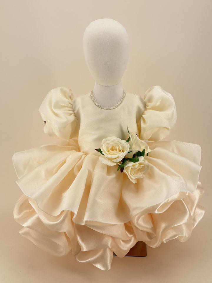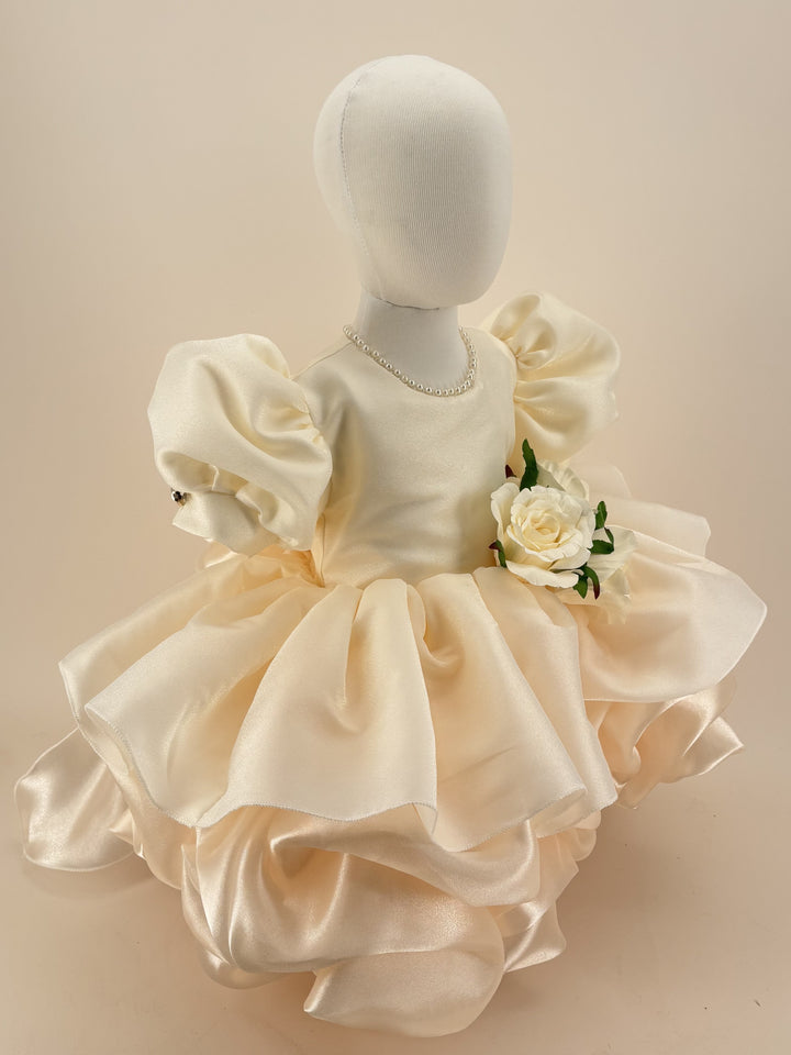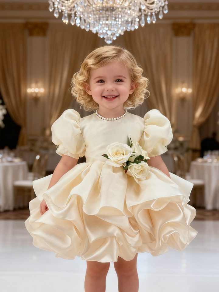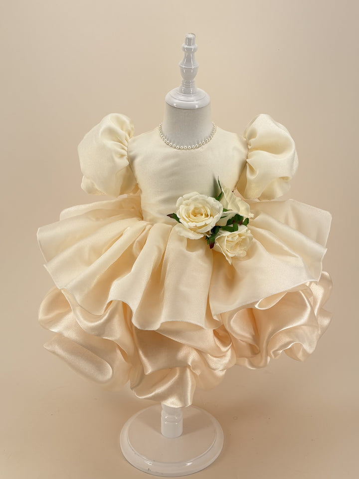 Satin Short Sleeves Knee Length Baby Girl Dress