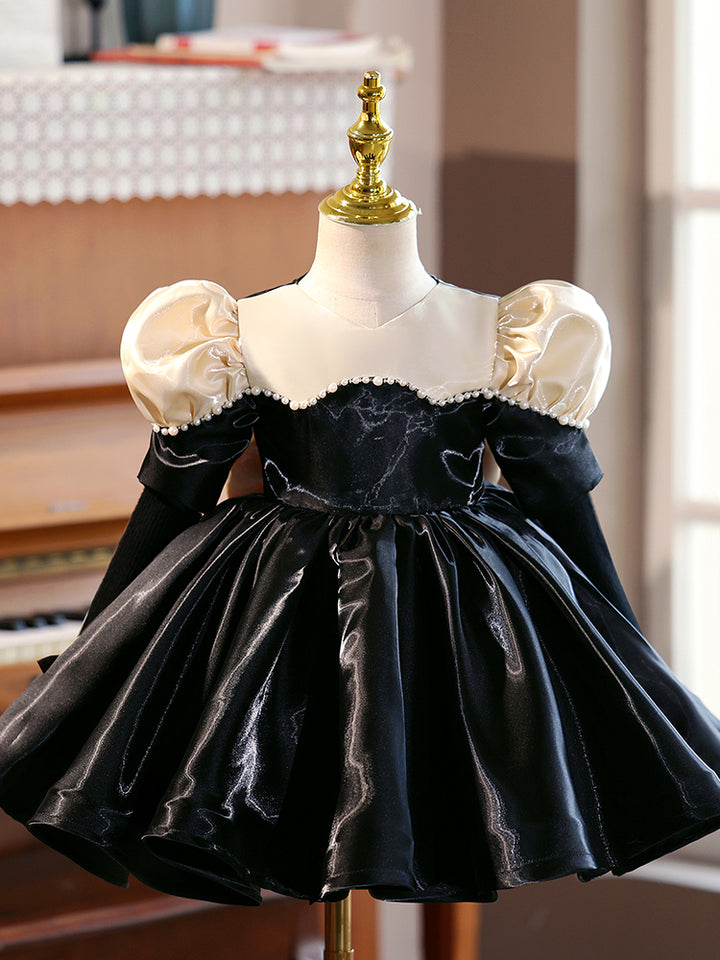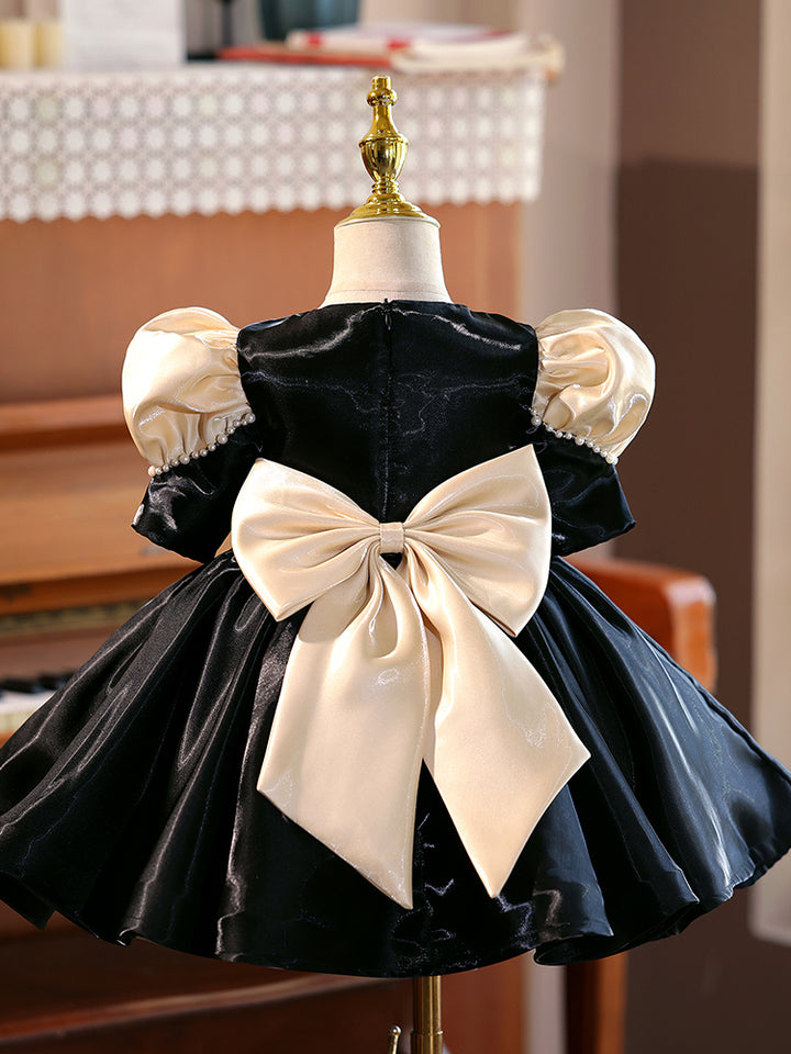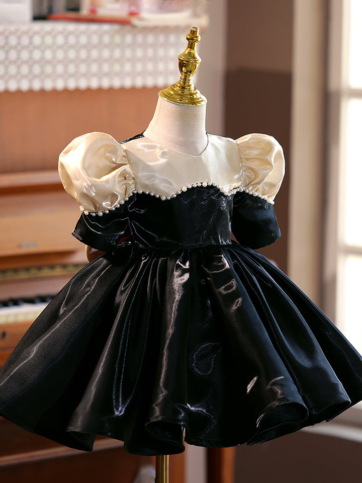 Satin Short Sleeves Knee Length First Birthday Dress