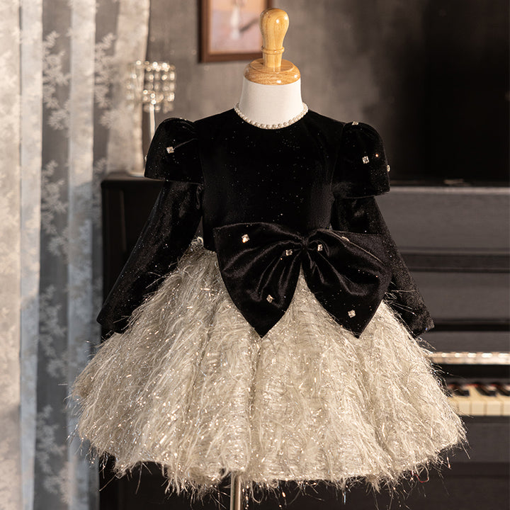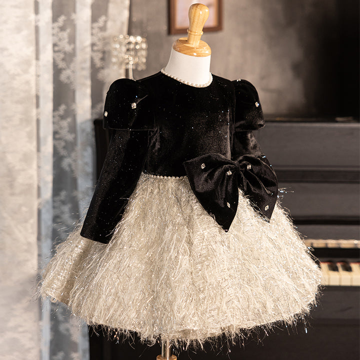 Velvet Long Sleeves Knee Length Baby Girl Dress