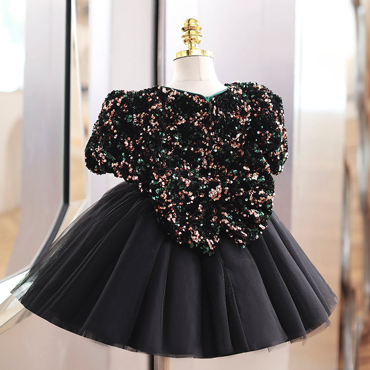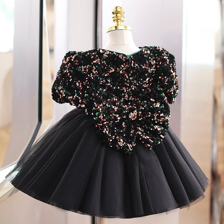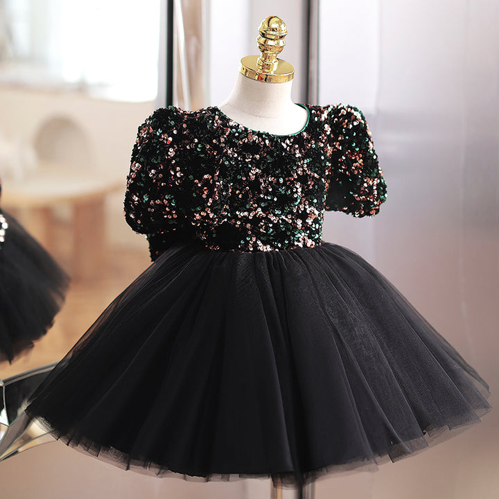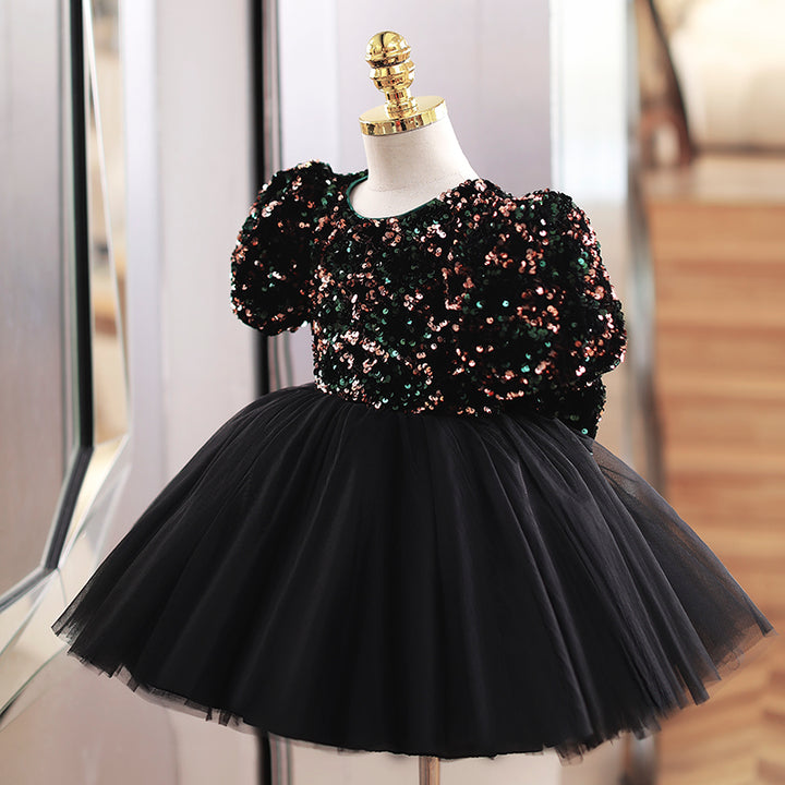 Velvet Short Sleeves Knee Length First Birthday Dress